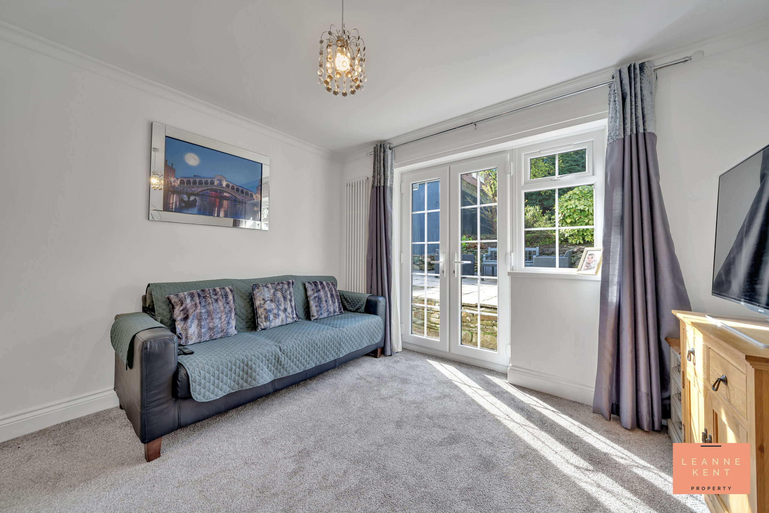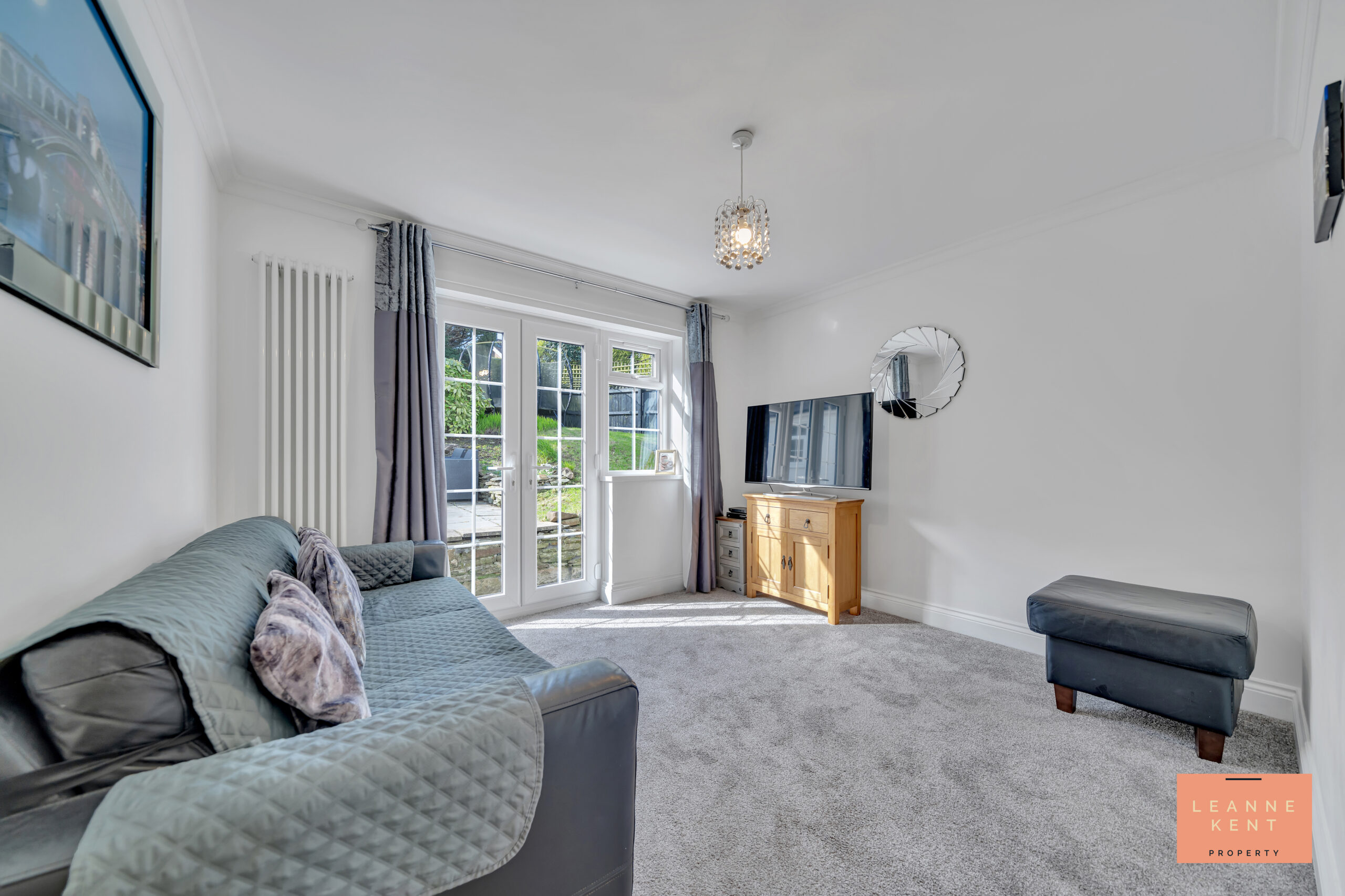 The snug is a beautiful room, ideal for relaxing and unwinding, and one of many reception rooms. The room is tastefully finished with a light grey carpet and white walls. French doors lead out to the beautiful garden, whilst the room further benefits from a stylish vertical radiator and multiple power sockets.