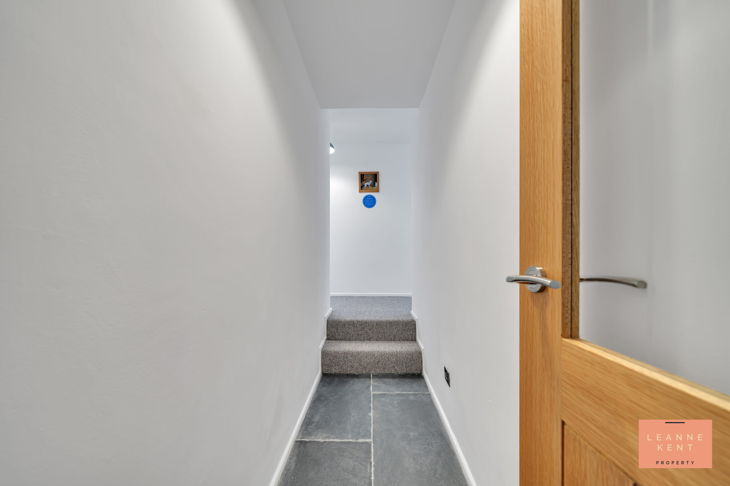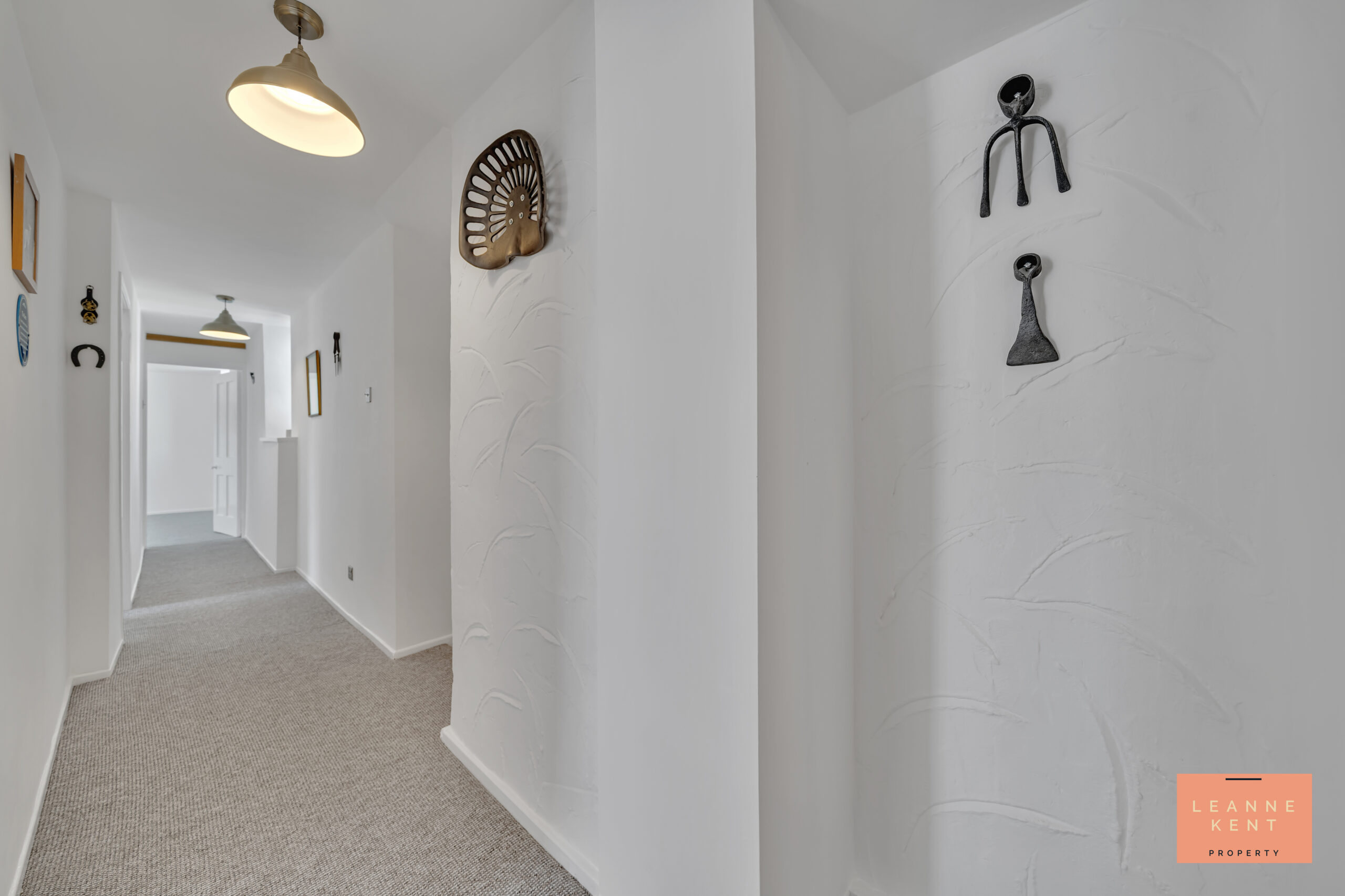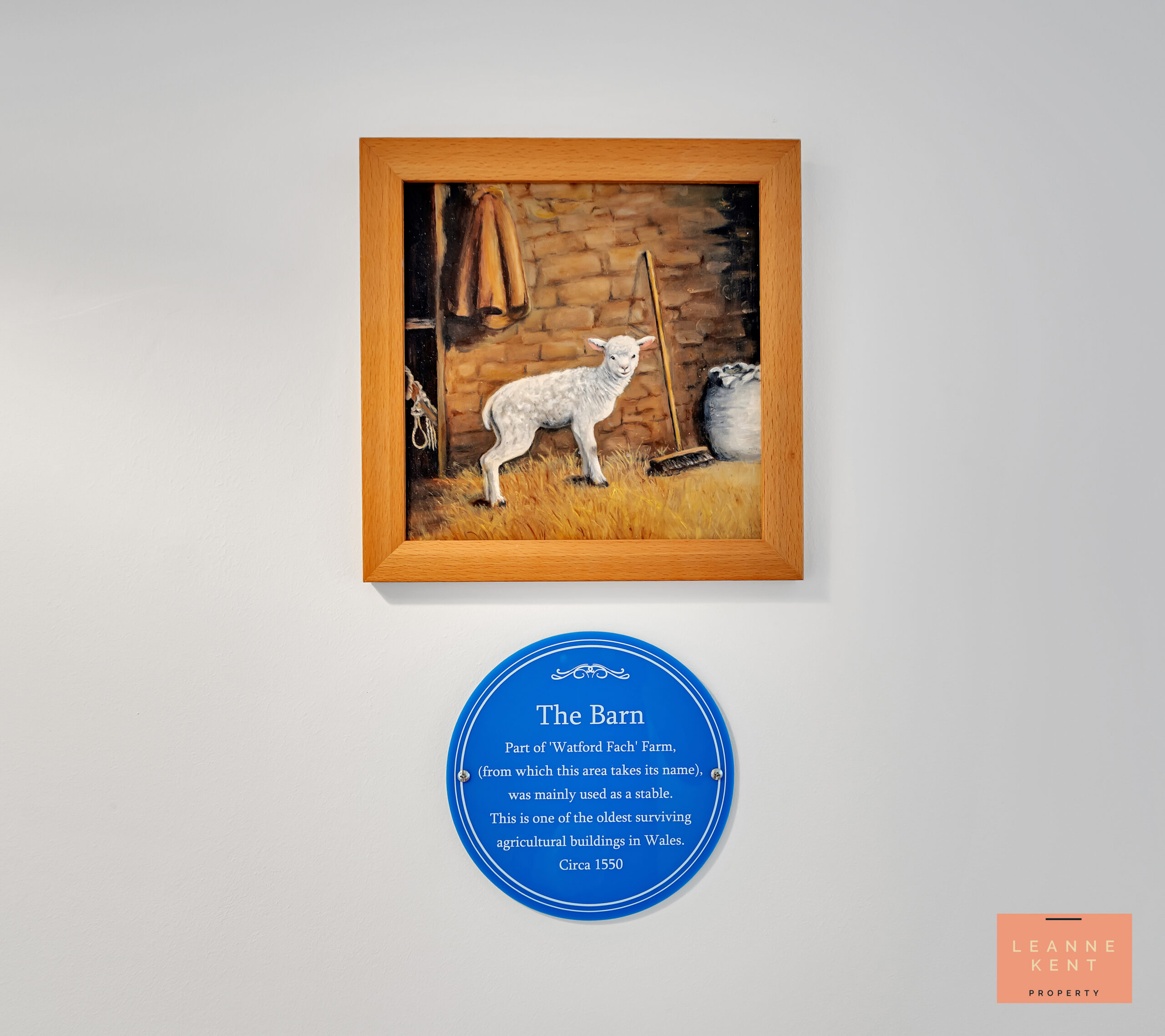 On the ground floor, a decorative oak-veneer door leads into 'The Barn' part of this beautiful home, which was built circa 1550, and was part of 'Watford Fach' farm, and was mainly used as a stable. This is one of the oldest surviving agricultural buildings in Wales. This is what makes this property so special due to its being steeped in history. A corridor with slate-style flooring and white walls leads to the main corridor, which is finished with a beige carpet and white walls. This area leads to three bedrooms and another bathroom with a separate WC.