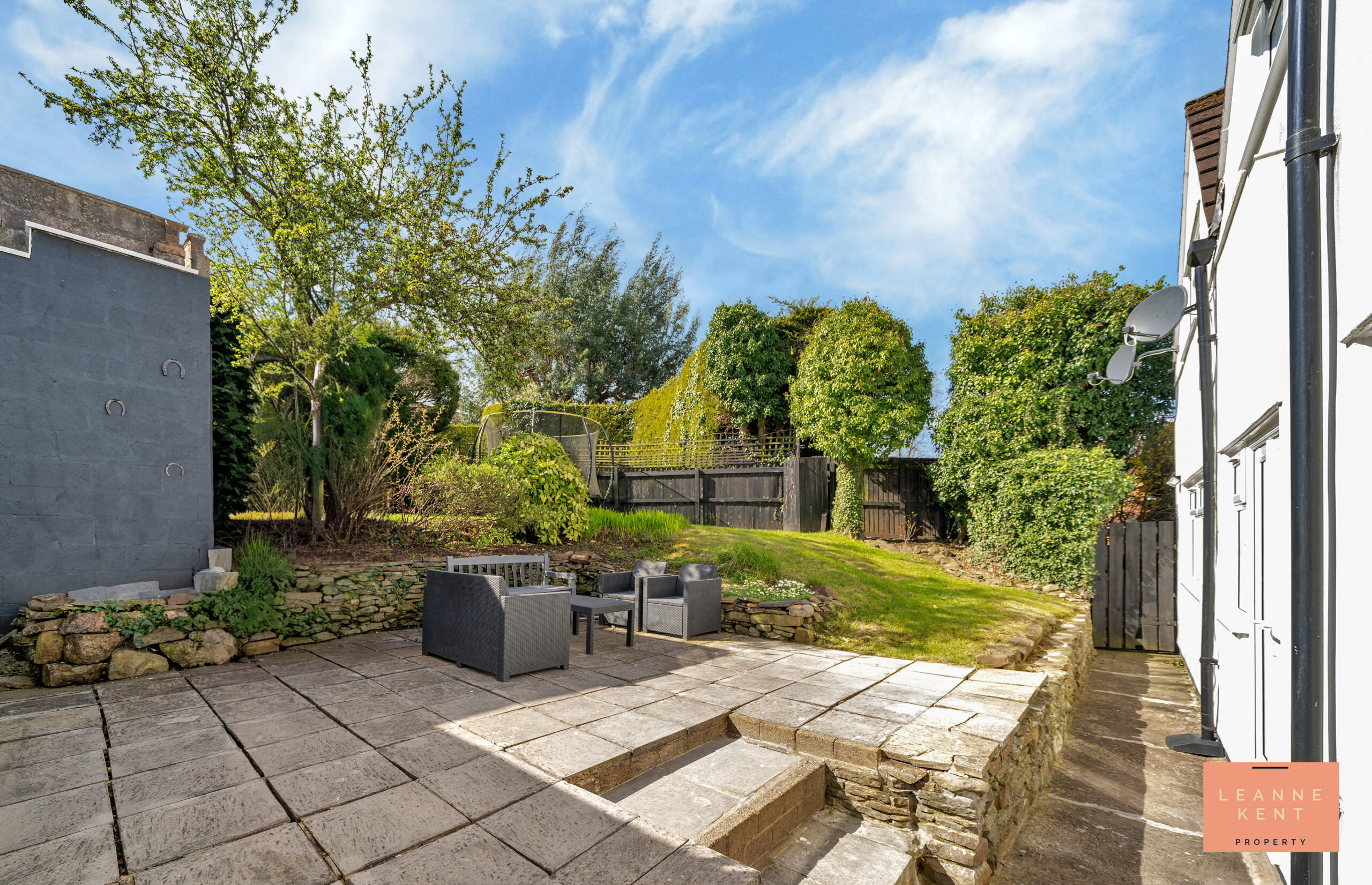 The south-facing garden is beautifully presented and provides an amazing private outdoor retreat. One of the highlights of the garden is the original Barn, which has been finished to show the original stone walls. This is a real showstopper when you have friends and family visit. From the back of the house, there is a good-sized patio area, which is the ideal place for a table and chair set. From here, there is a large lawned area which leads up to the rear of the property and is a great space for children and pets to play. The lawned area is surrounded by mature trees and bedding areas. This garden is a peaceful, private oasis that benefits from ample sun. A gate leads to the front of the house for convenience.