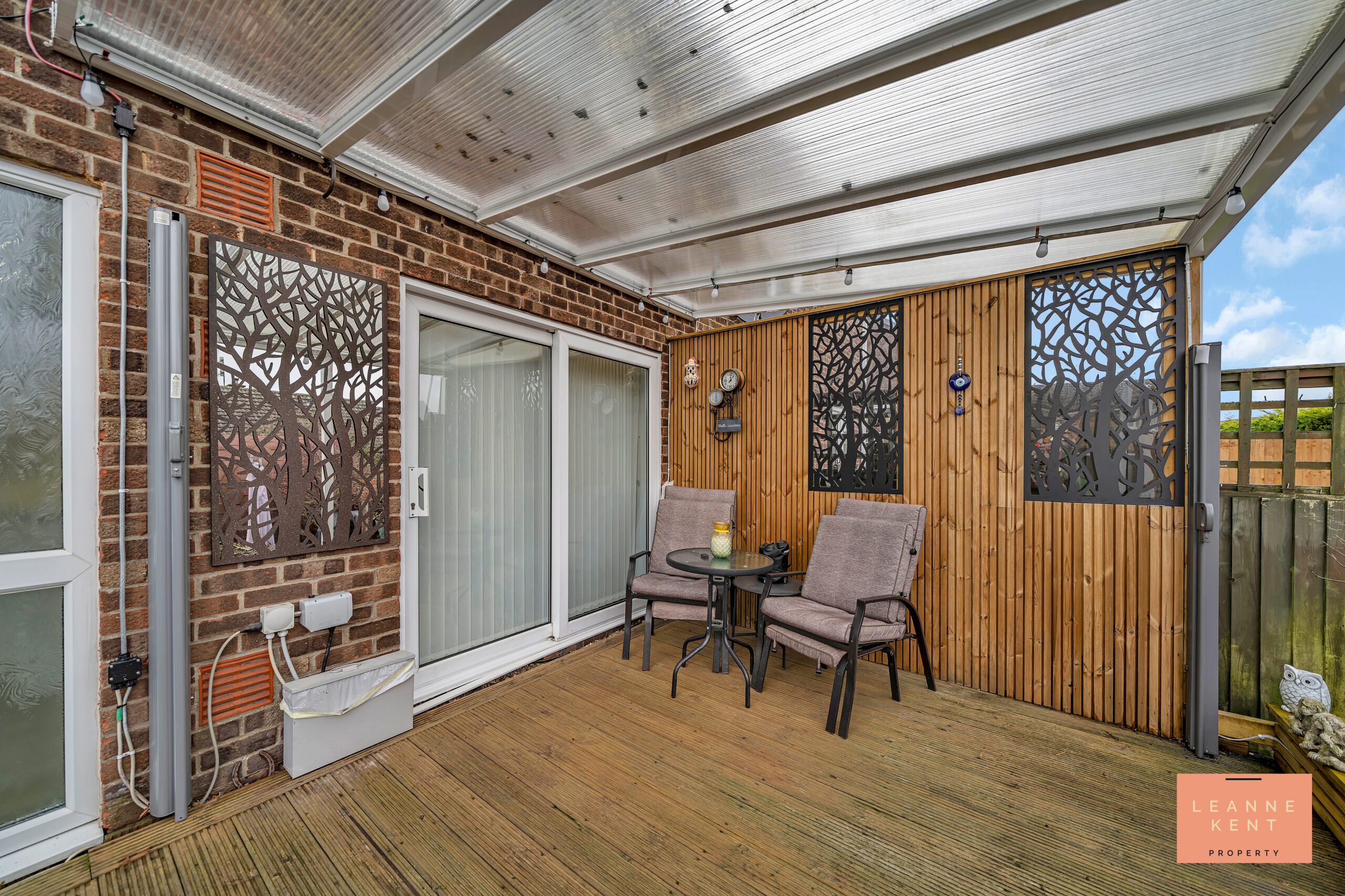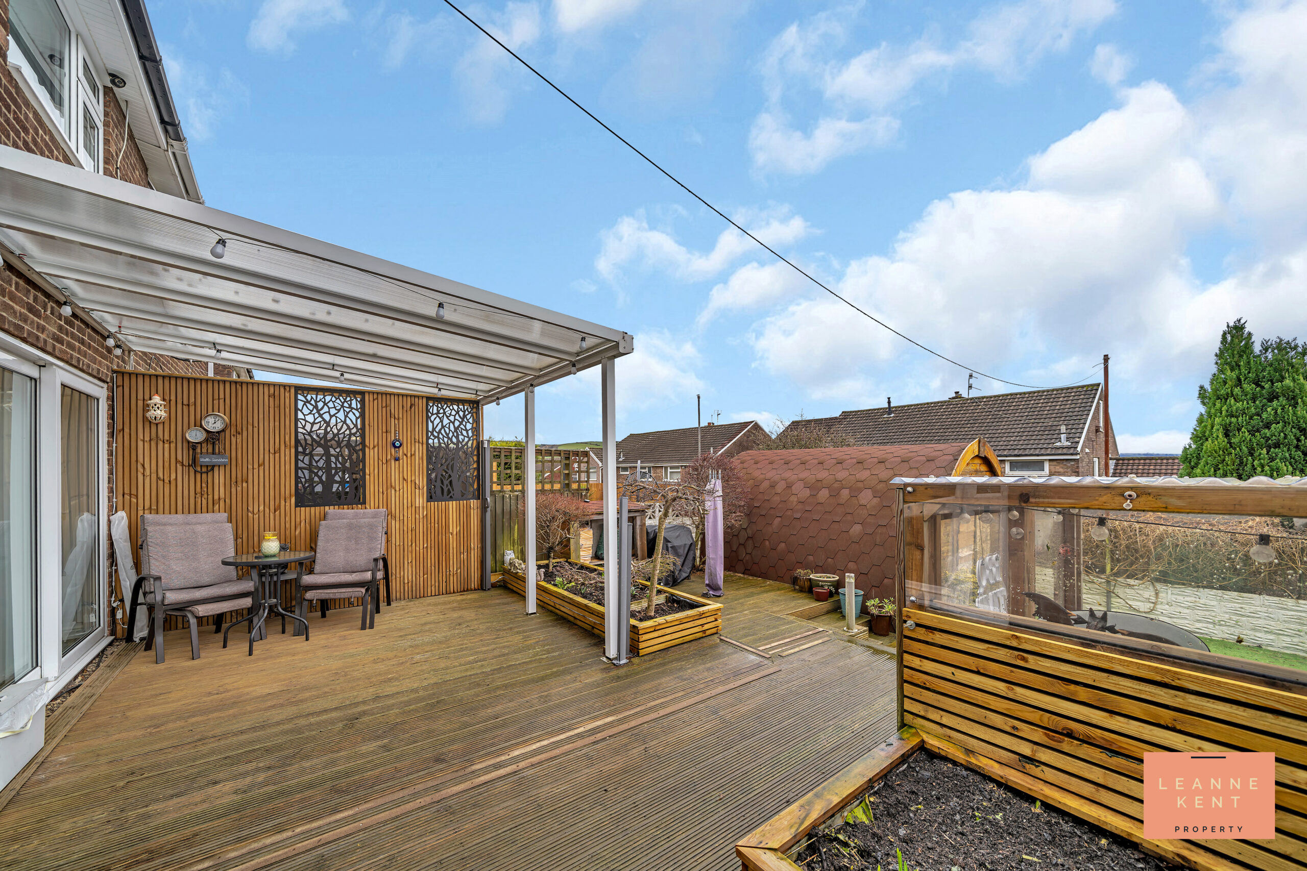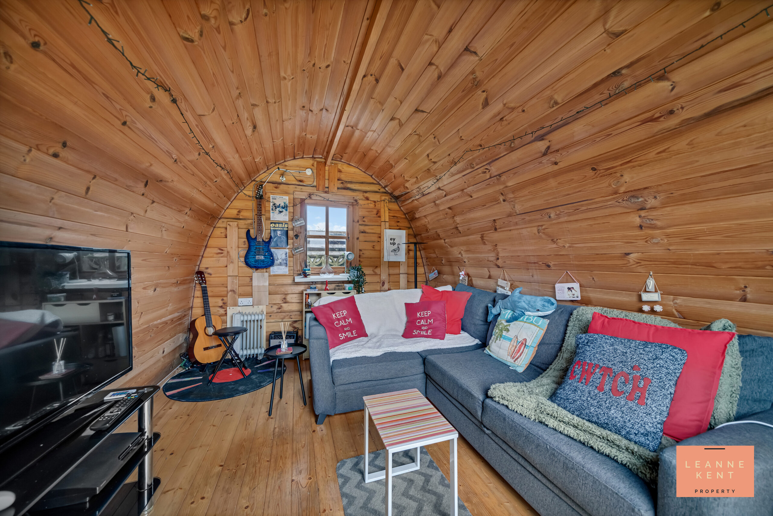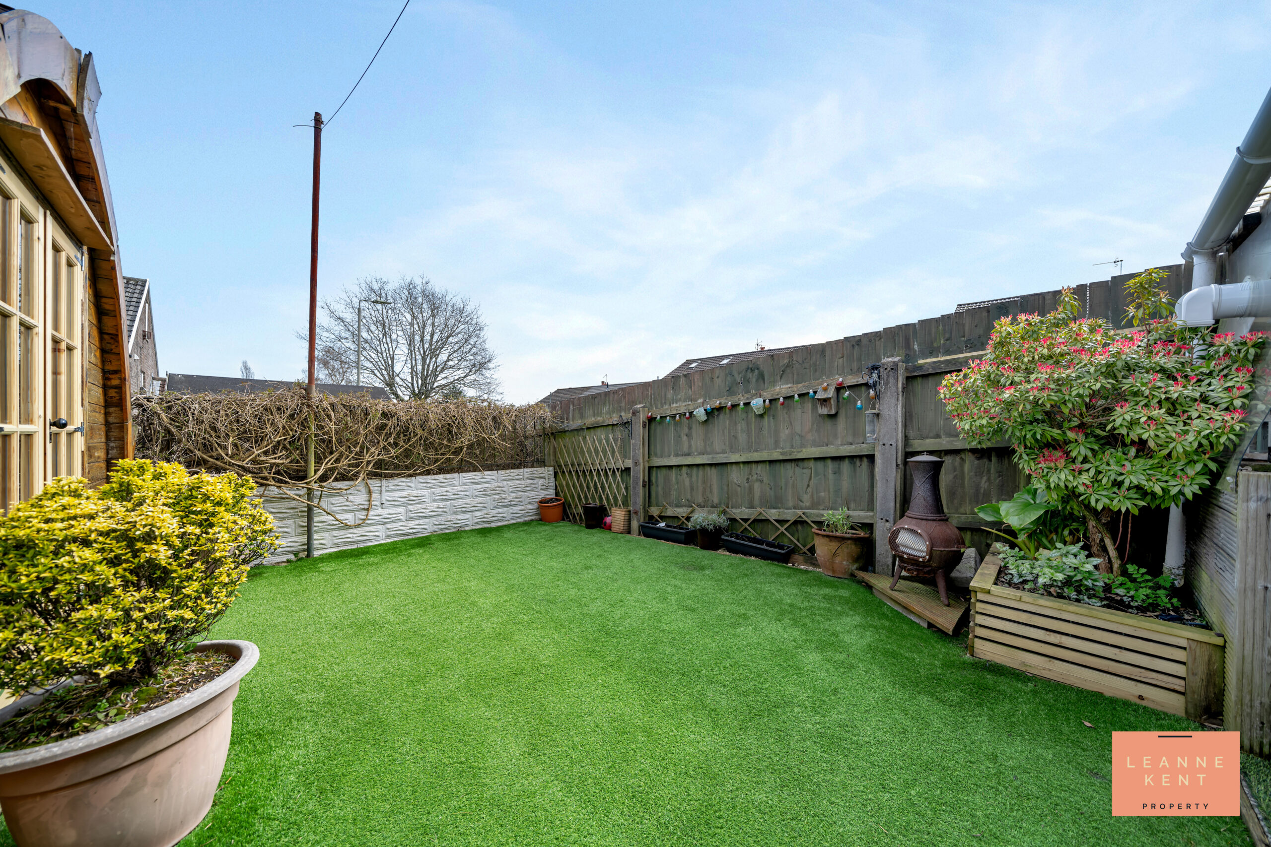 The garden is a true delight and offers multiple areas from where to enjoy this outdoor space. As you step from the back of the house you are greeted with a large patio area finished with wood decking, with part of it benefiting from an overhead covering. The decked area is relatively large, which provides multiple places to sit and relax. From here, there is an area laid with artificial grass, which is ideal for children or pets. Next to this is an amazing pod which offers a cosy space to enjoy all year round. There is also a covered BBQ area meaning you can enjoy a BBQ all year round. This is a great garden for spending time with family or entertaning guests. There is also a side gate for convenience.