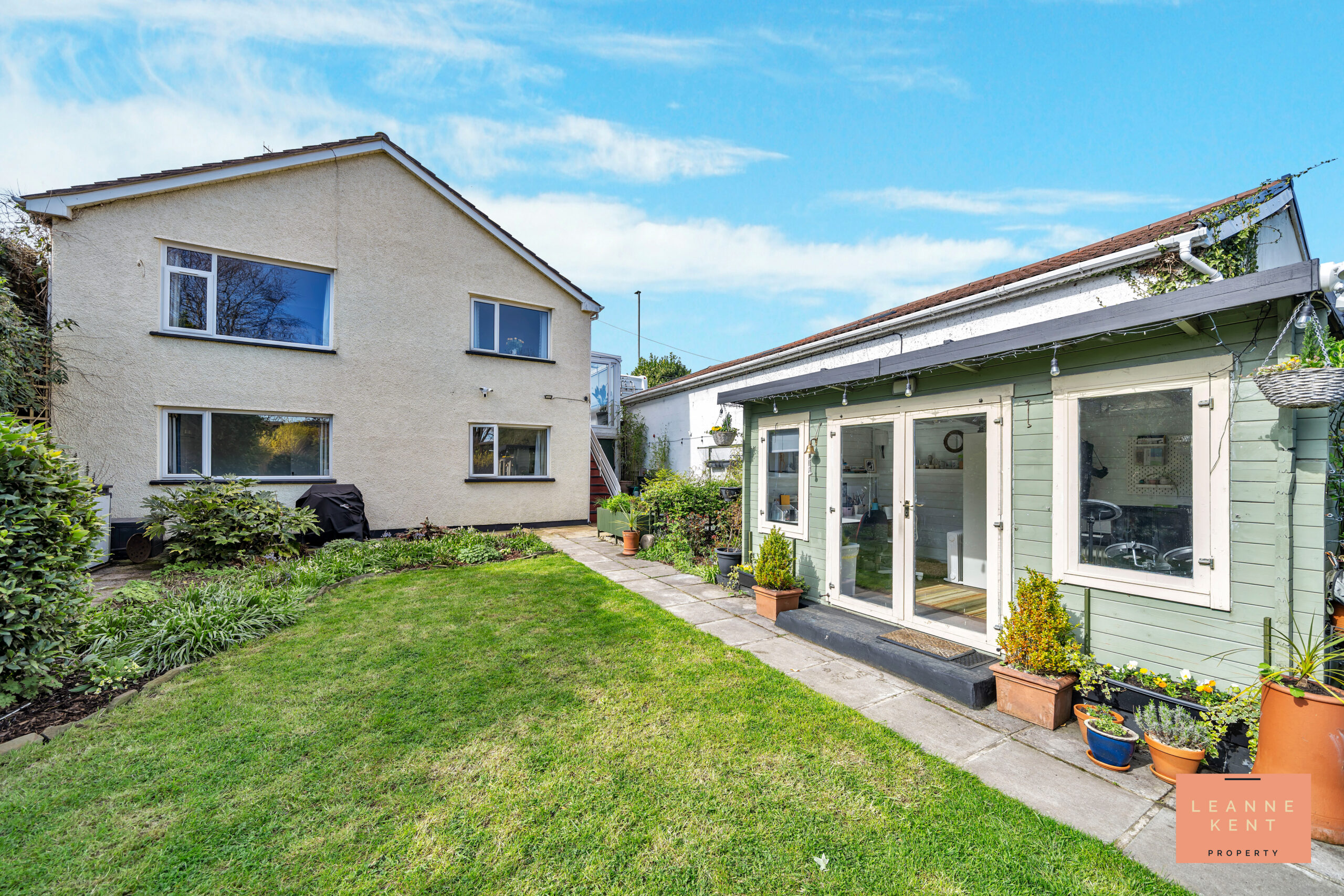 The outside space is a true highlight of this wonderful home, offering exceptional outdoor living. The rear garden stretches approximately 115 feet and is beautifully maintained, providing a tranquil retreat. Directly from the house, a paved patio area is perfect for morning coffee or al fresco dining. Beyond the patio, a large, well-kept lawn is bordered by mature trees and planting areas, creating a sense of privacy and seclusion. There are several additional spaces for placing tables and chairs, offering ideal spots to relax and enjoy the garden’s peaceful atmosphere. To one side, a charming summer house finished in light green provides power and lighting, making it an excellent choice for a home office or a quiet haven for relaxation. Stepping stones lead further into the garden, where you will find an aviary and sheds located at the far end, adding both character and practicality. The garden is very private and offers a perfect setting for spending quality time with friends and family. To the front of the property, a driveway provides parking for multiple vehicles, ensuring convenience for residents and visitors alike. This home combines stylish living with exceptional outdoor space, making it a rare find in today’s market.