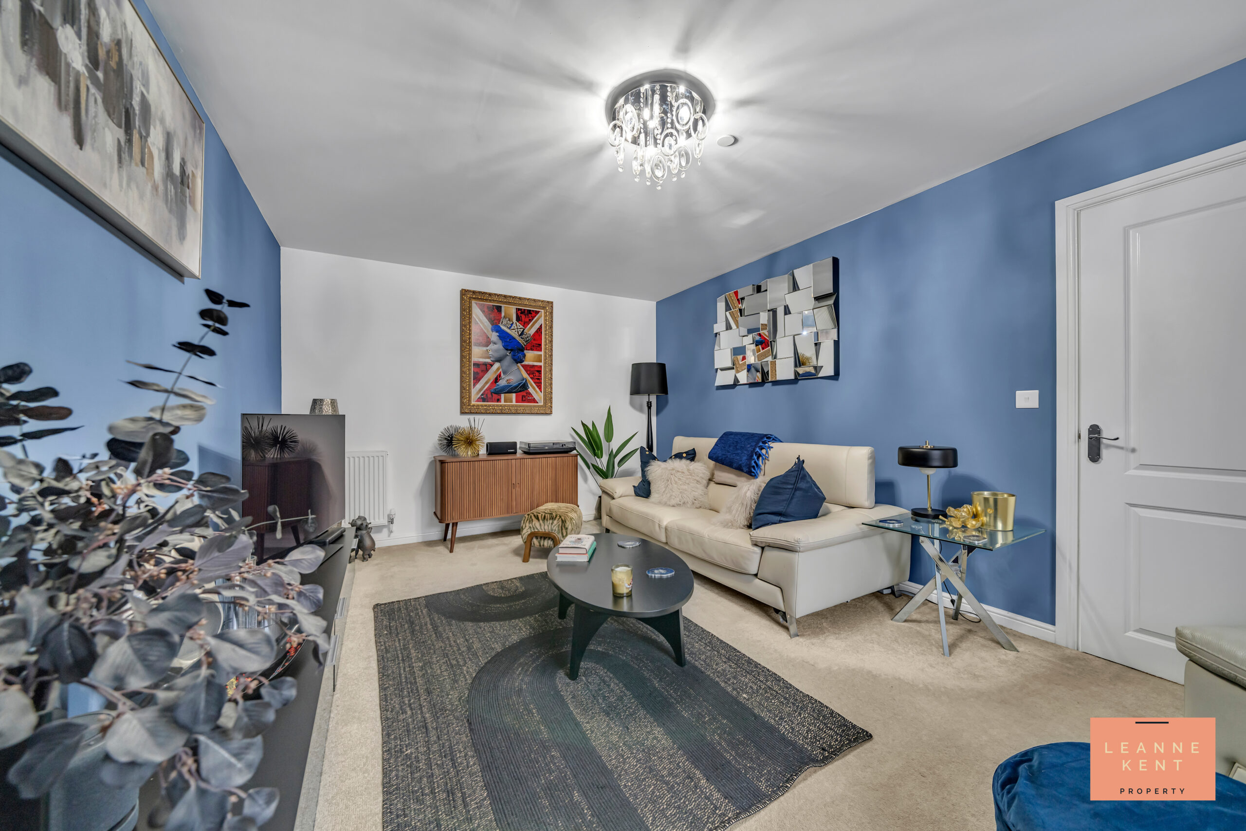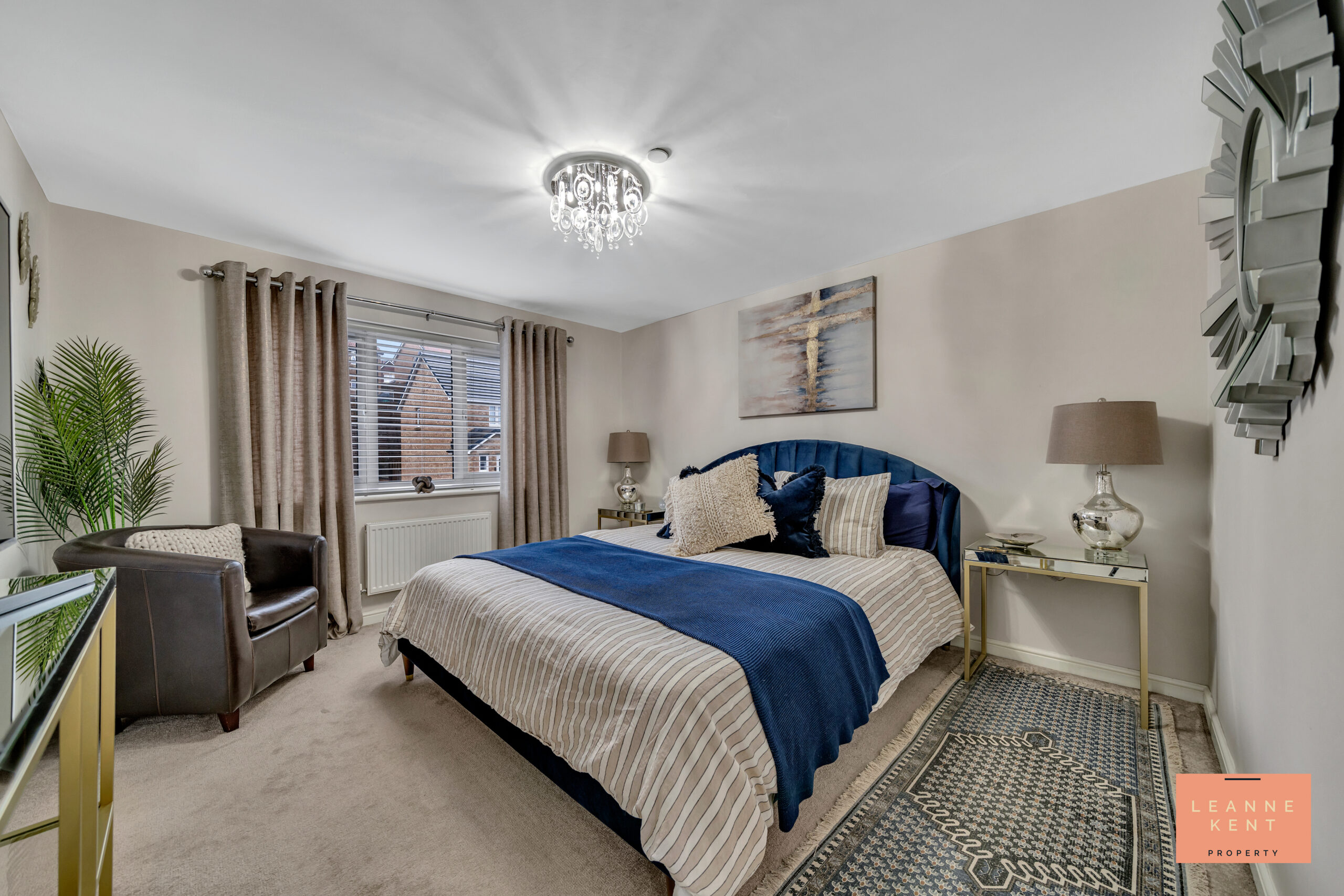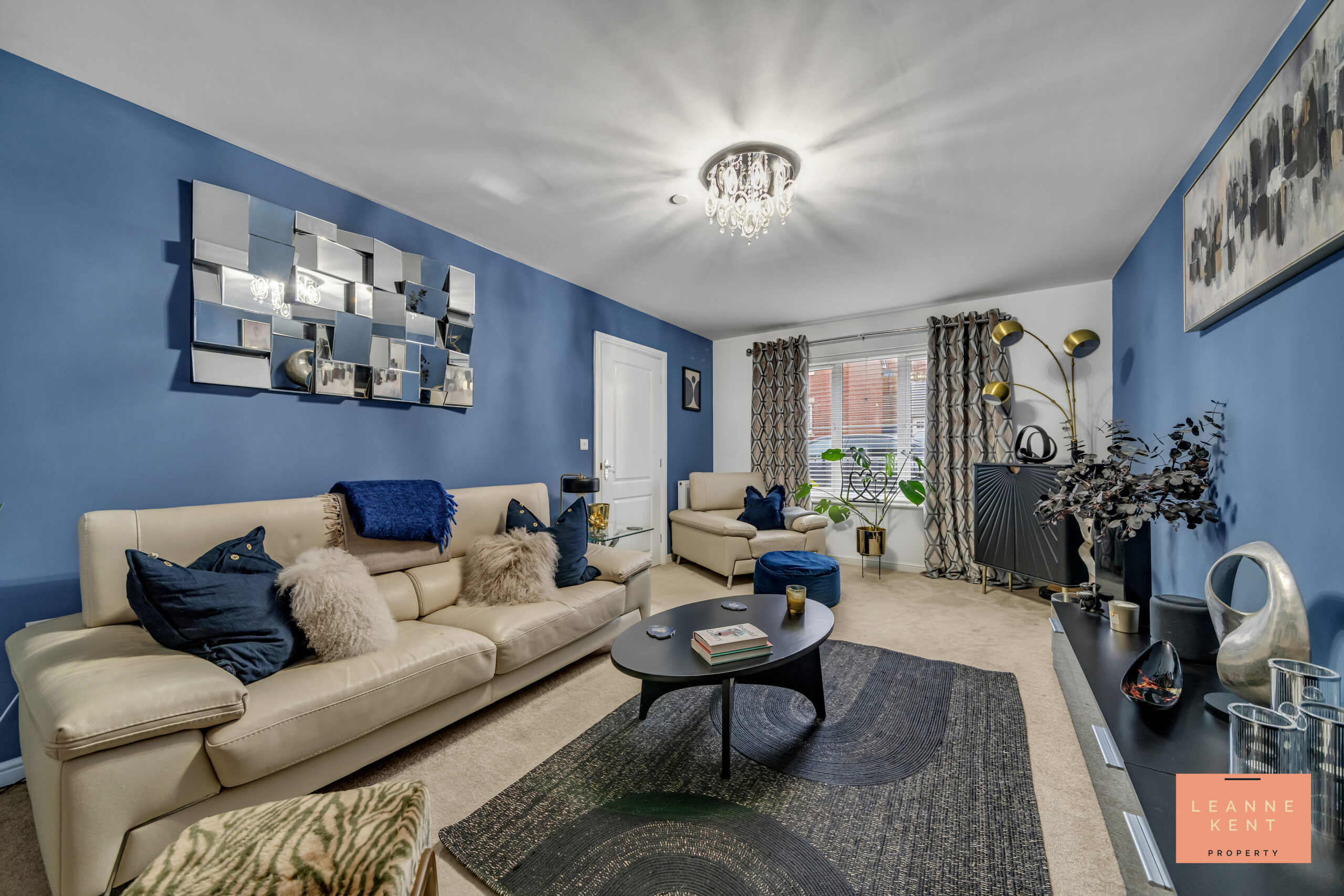 The lounge is beautifully presented with an oatmeal carpet and a combination of blue and white walls. The combination of colours and decor makes this room stand out. To the front is a large window which allows natural light to flood the room during the day. The room further benefits from a radiator and multiple power sockets.