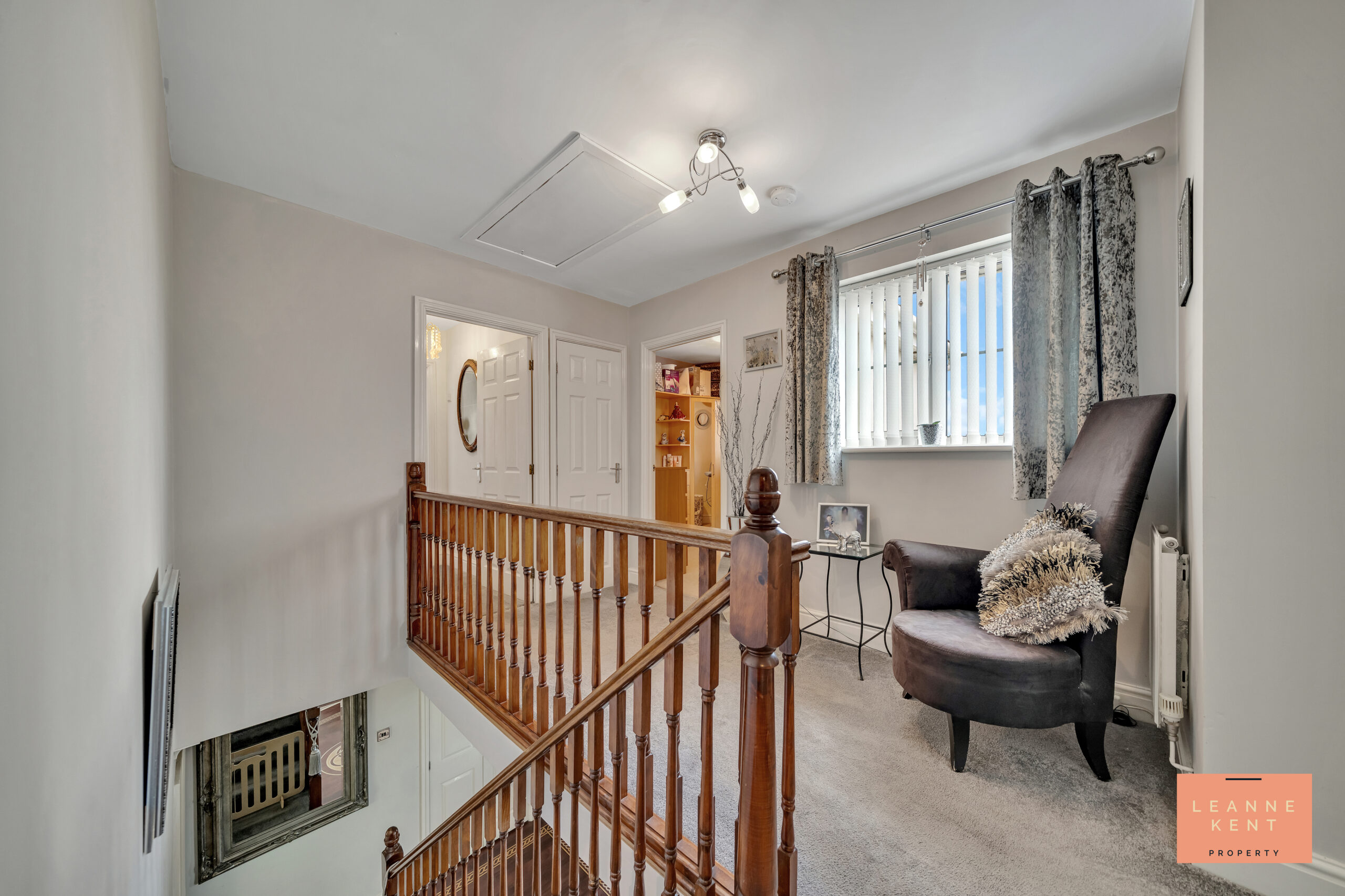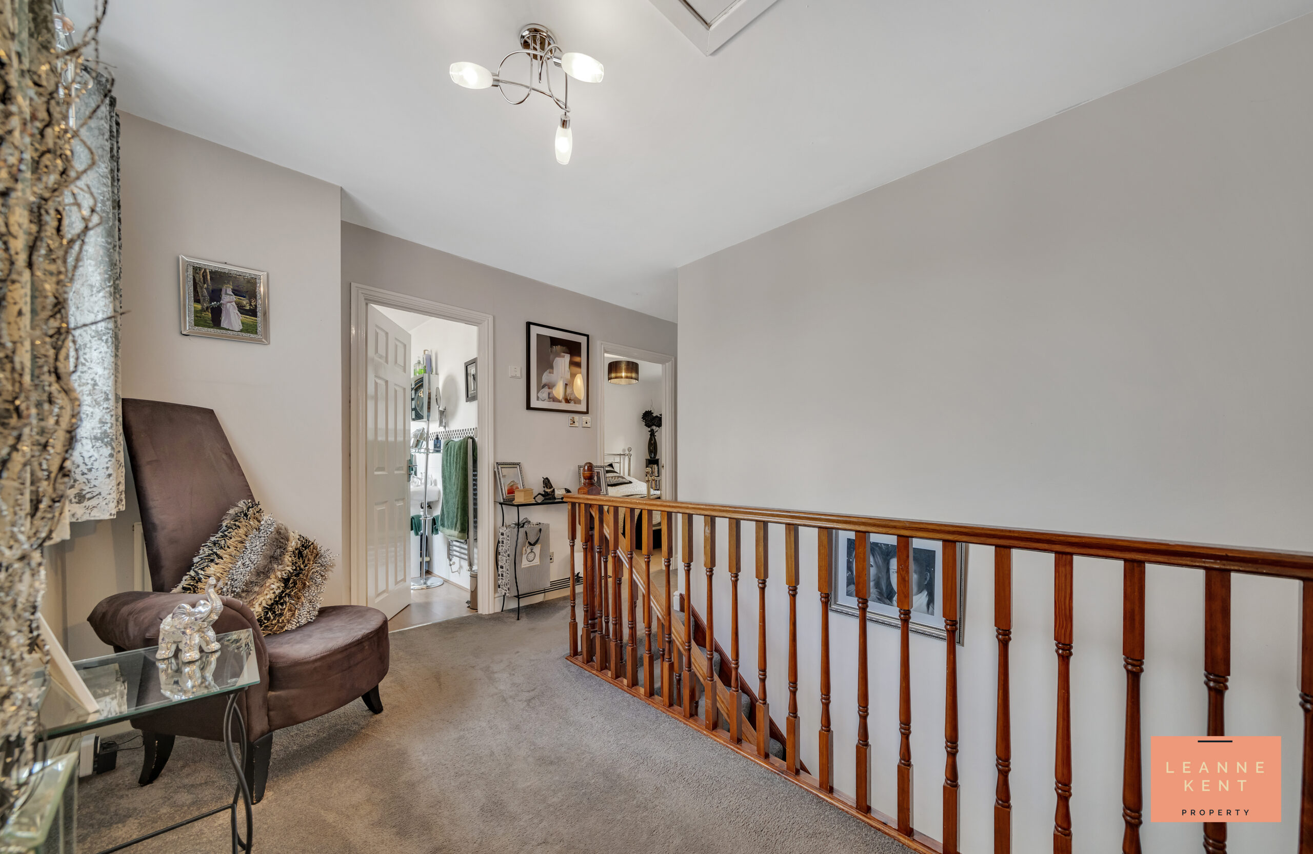 The spacious landing is tastefully presented and finished with a modern carpet and neutral decor. The landing is larger than most and offers access to the four well-appointed bedrooms and the family bathroom. There is also access to the loft area, which is fully boarded, providing plenty of storage, and it is complete with a large hatch and a fold-down wooden ladder. There is also a cupboard and a window.