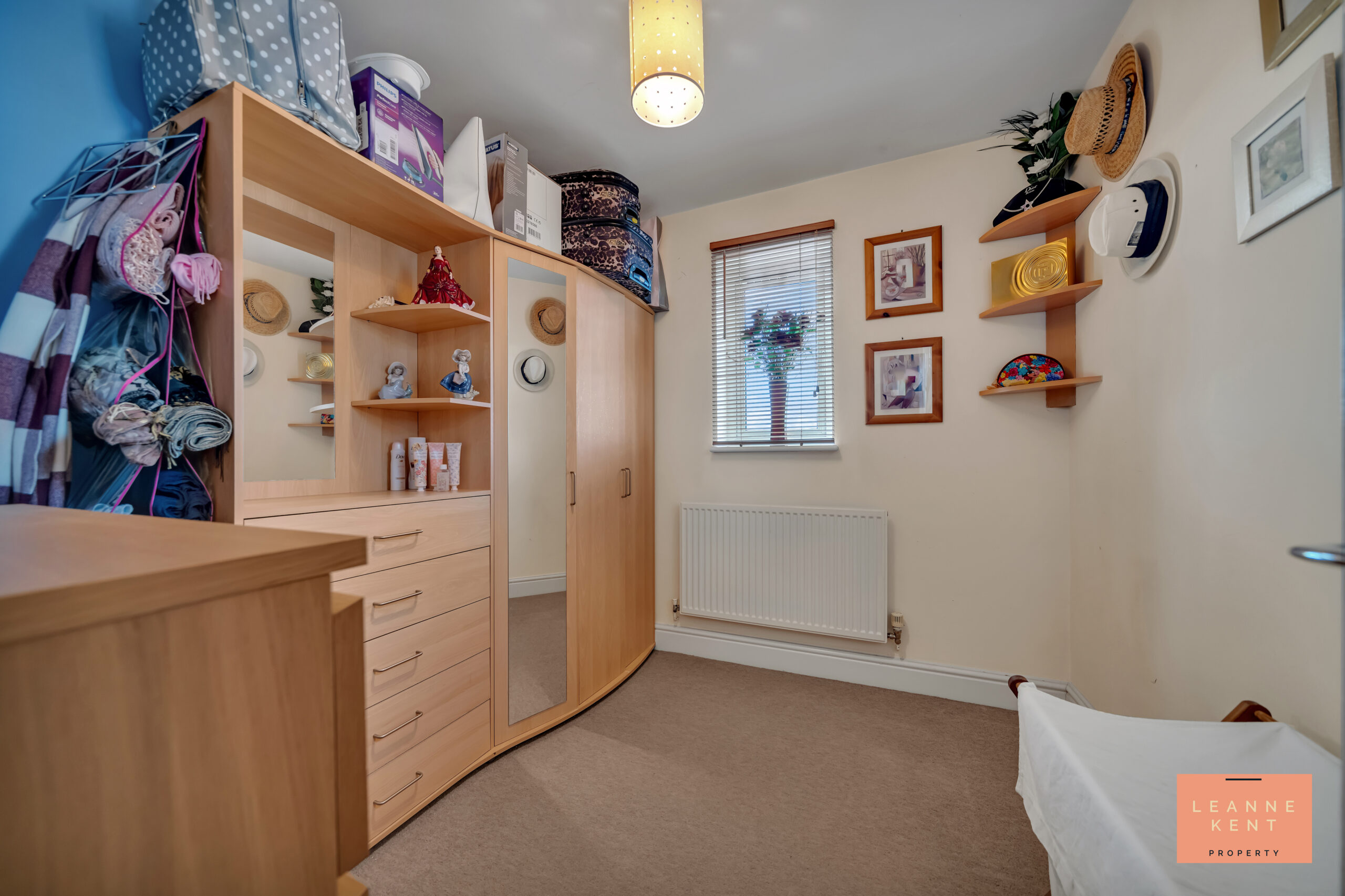 Bedroom three is another good-sized room and is tastefully finished with a modern carpet and neutral decor. One wall is finished in a soft green, which adds colour and depth. A window allows light to flood the room during the day. The room further benefits from a radiator and multiple power sockets.