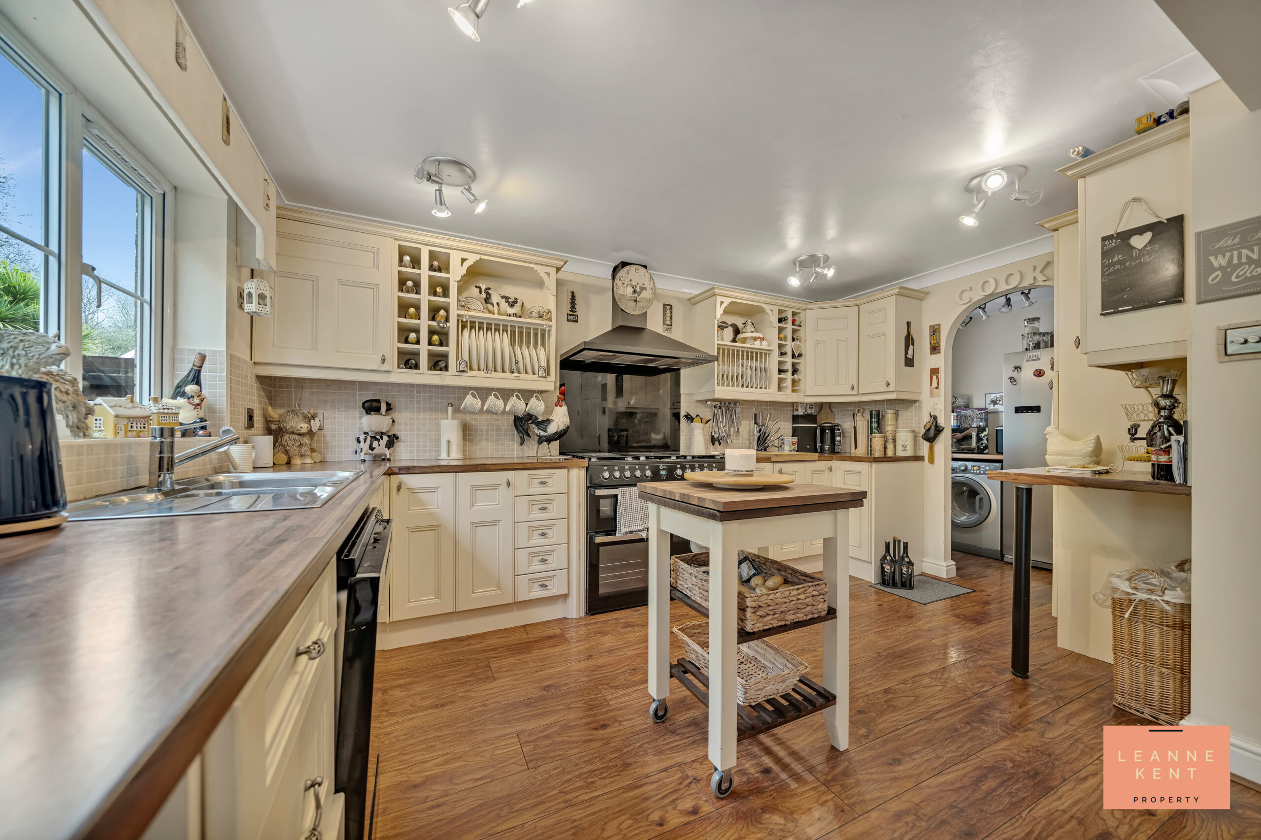 The kitchen benefits from a good-sized utility room, which includes worktop and cupboard space. There is also room for a washing machine and a dryer.